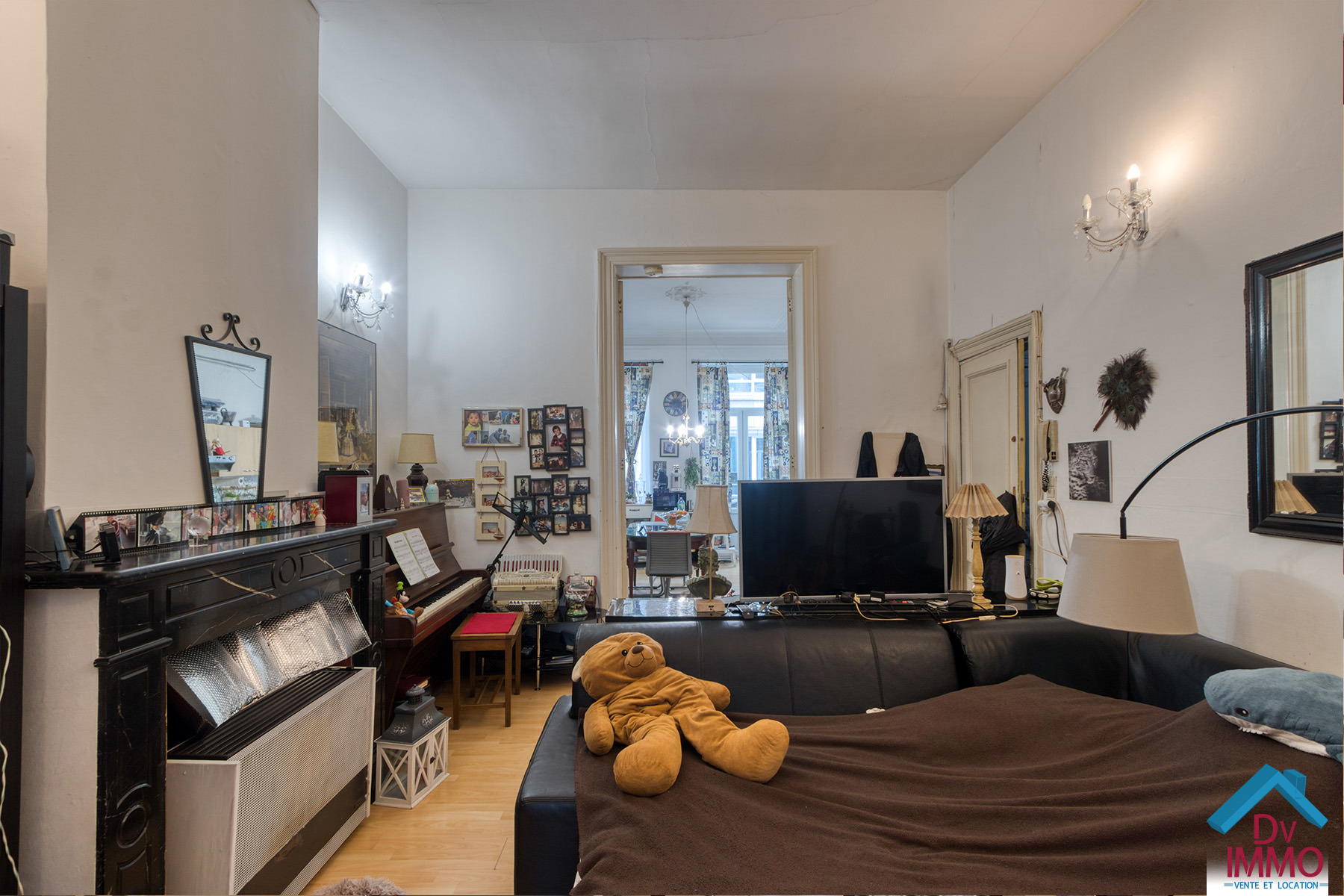 Entre la "Gare du Midi" et le "Parc de Forest", situé au 1er étage dans un petit immeuble (nouvelle copropriété) sans charges, spacieux appartement à rénover (+/-90m²) composé d'un séjour, d'une salle à manger avec cuisine "américaine" avec accès à un balcon, d'une salle de bains, de 2 belles chambres ( +/-17 et 19m²), 1 cave, convecteur individuel au gaz, double vitrage pvc, actuellement loué 600€ (PREAVIS DE 6 MOIS POUR OCCUPATION PERSONNELLE), idéal 1er achat ou investissement, A DECOUVRIR SANS TARDER!!! PEB : F
